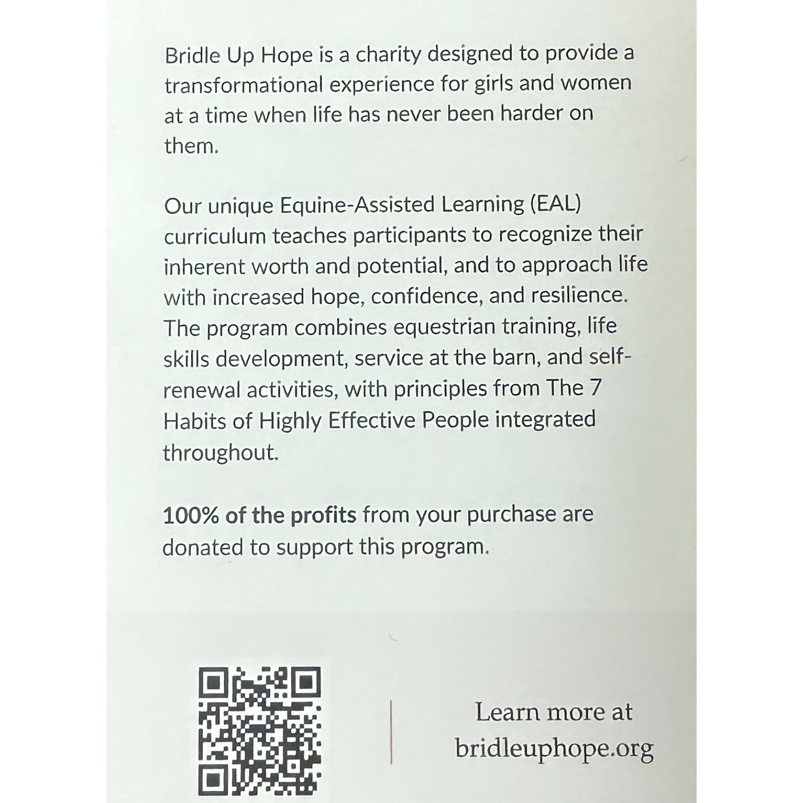 • 100% of the profits from this bracelet goes towards the Bridle Up Hope charity